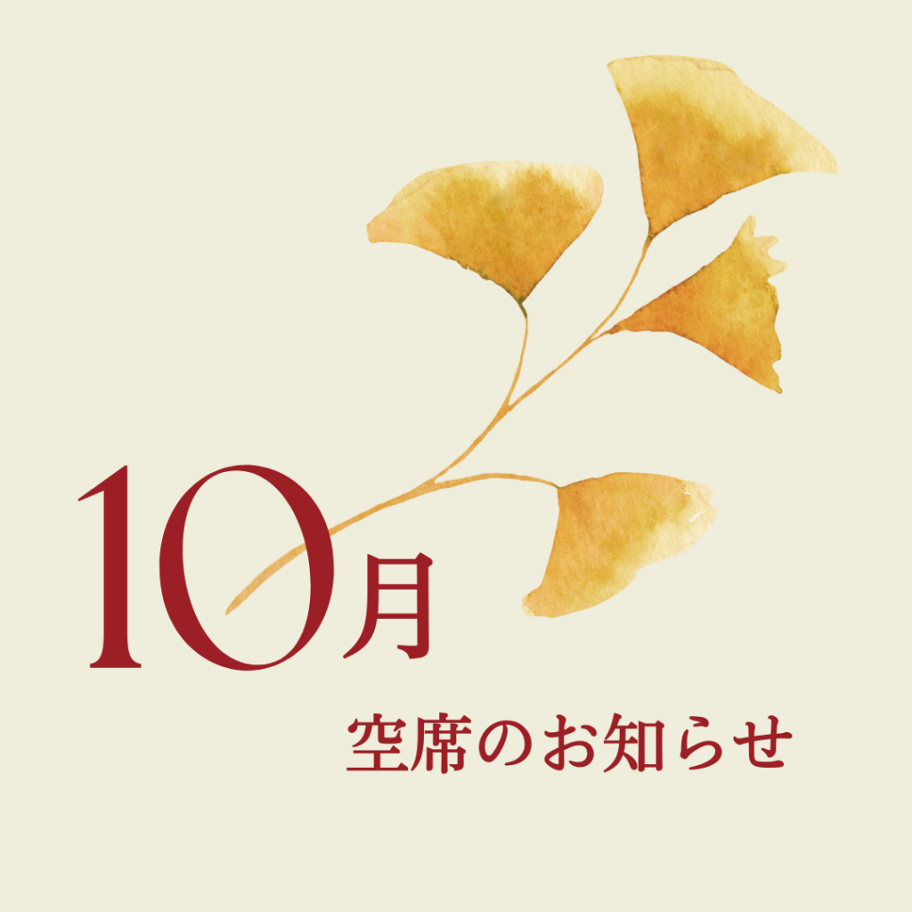 10月の空席状況をお知らせ致します。